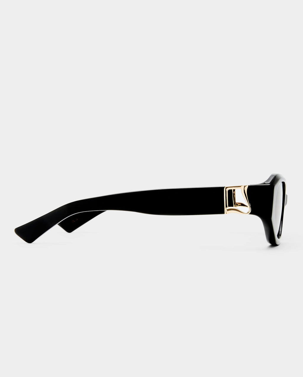 A statement silhouette for the modern muse. The Freddie by Luv Lou reimagines the classic frame with a soft hexagonal shape and bevelled edges that catch the light from every angle. Bespoke organic L gold detailing at the temples adds a touch of polish, making this style feel both directional and refined.