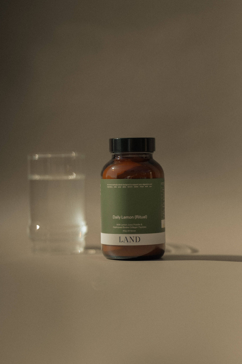 An inner wellness blend designed to support your digestion, hydration, and skin health ~ our DAILY LEMON (RITUAL) is the take anywhere daily ritual essential. We've combined lemon juice powder & hydrolysed bovine collagen peptides to create a flowing blend that dissolves in hot or cold water and tastes like a zesty and refreshing hit of freshly squeezed lemons. Think, it's your morning lemon water ritual but elevated. Tick off two rituals in one with our updated collagen formula. Why make it a ritual: - Digestive support - Skin & nail health - Immune support - Hydration - Detox support - Promotes healing - Gut health - Joint & bone health Ingredients: Lemon Juice Powder (Lemon Juice, Tapioca Maltodextrin), Hydrolysed Bovine Collagen Peptides, Inulin, Bamboo Silica.