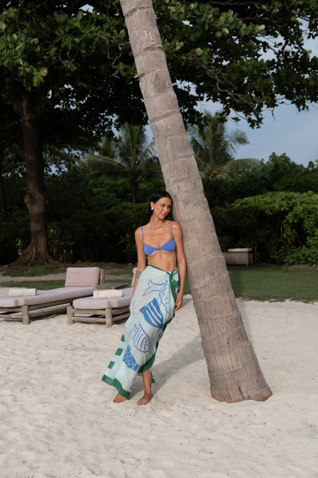 Lightweight & effortless, the Deep Sea Sarong by LAND Essentials is crafted in 100% GOTS organic cotton & finished with a luxurious hand-rolled edge. Created with your holiday plans in mind, the Deep Sea sarong features a contrast hand-painted print that's inspired by long mediterranean lunches spent seaside. Designed to be worn multiple ways ~ long, short, tied, or wrapped, this piece is a must-have for your next sunny vacation.