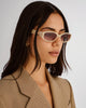 A refined take on a modern staple. This luxe rectangle frame features sculpted angles and polished gold hardware detailing at the temples. Understated yet striking, these sunglasses are designed for the girl with effortless style and a sharp eye for detail. Clean lines, timeless shape - made to go with everything.