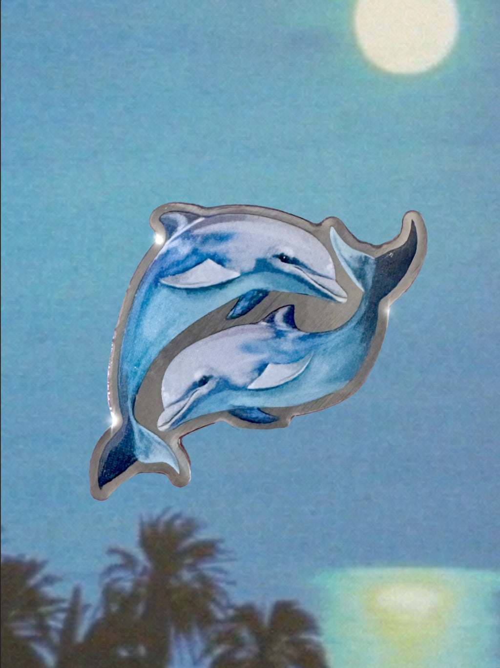 This enamel pin by Sea Street showcases two dolphins in a yin-yang design, symbolising balance and flow. A playful ocean-inspired piece to clip onto your everyday look.