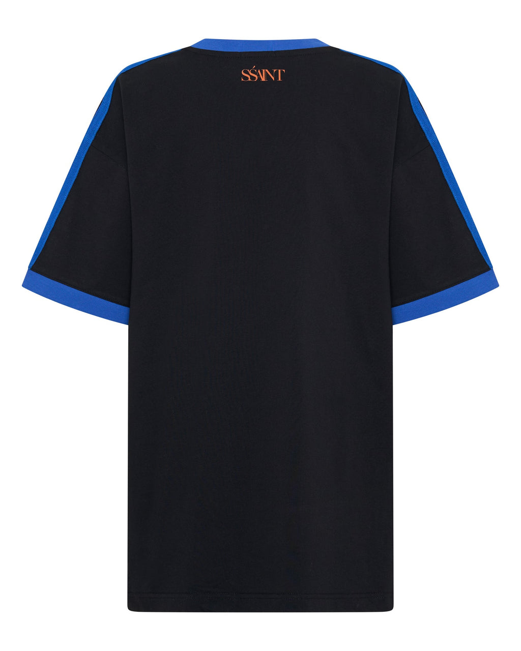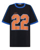 Gear up with the Twenty Two Tee, an oversized unisex design that pays tribute to our iconic Twenty Two fragrance. This bold black tee features striking orange 22 numbers on the front, complemented by blue stripes on the shoulders and sleeves for a football jersey-inspired look. Effortlessly cool and unmistakably stylish, this tee is your ultimate statement piece.