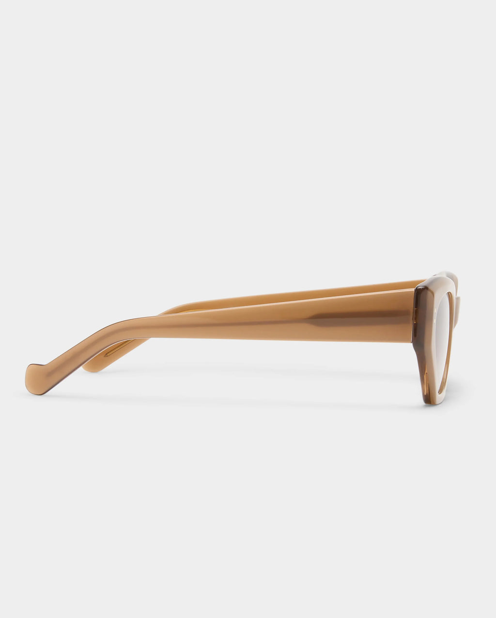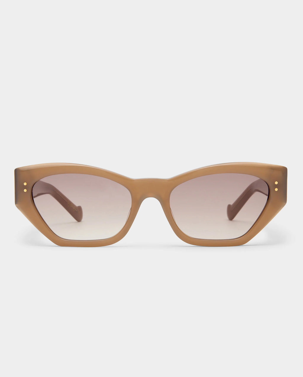 • Finished in a premium almond frame with light smoke gradient lenses.