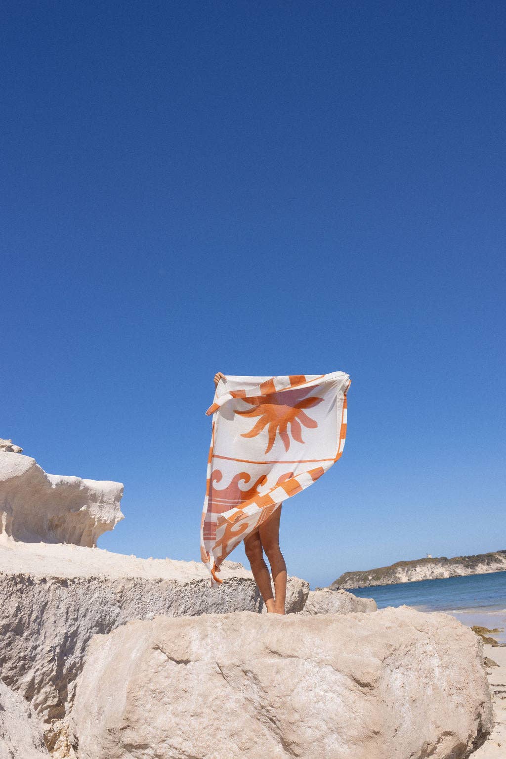 Lightweight & effortless, the Vacation Sarong by LAND Essentials is crafted in 100% GOTS organic cotton & finished with a luxurious hand-rolled edge. Created with your holiday plans in mind, the Vacation sarong features a contrast hand-painted print and is finished with a large check border. Designed to be worn multiple ways ~ long, short, tied, or wrapped, this piece is a must-have for your next seaside vacation.