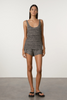 Crafted from a custom heavy-weight marle knit, this tank features a flattering scoop neckline, wide straps, and a longline silhouette for a modern, streamlined look. Style it with the Black Marle Knit Short for an effortlessly coordinated set.